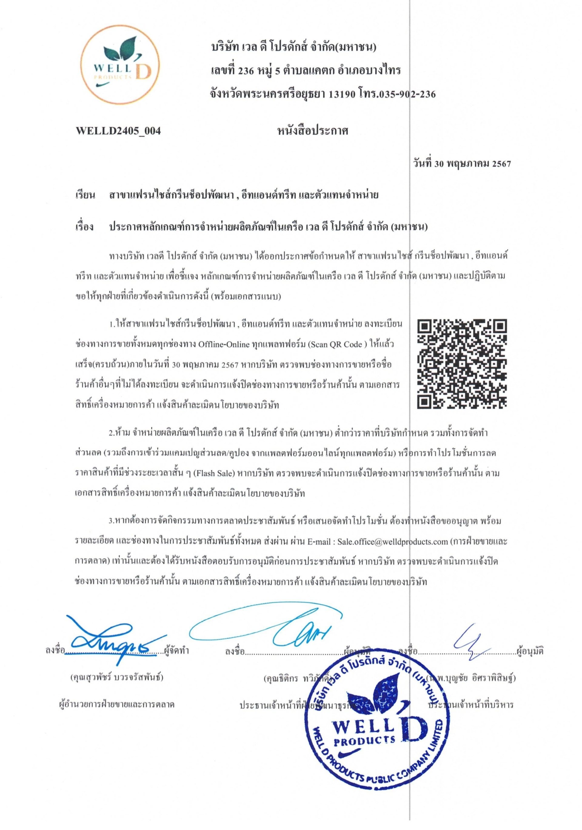บริษัท เวล ดี โปรดักส์ จำกัด (มหาชน) ผู้จัดจำหน่ายสินค้าแบรนด์ Well D Products และเจ้าของ