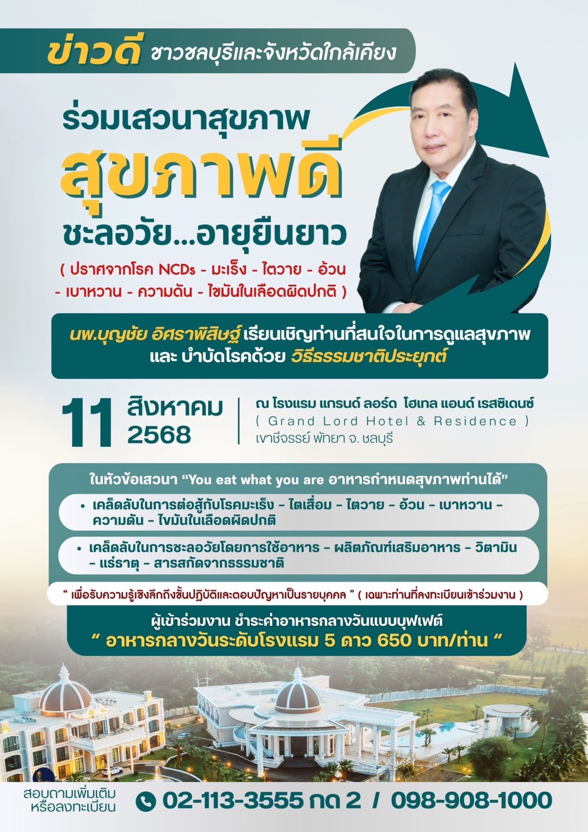 รวมพลังชาว...พัทยา(จ.ชลบุรี) "การบรรยายพิเศษ " สุขภาพดี ชะลอวัย อายุยืนยาว"